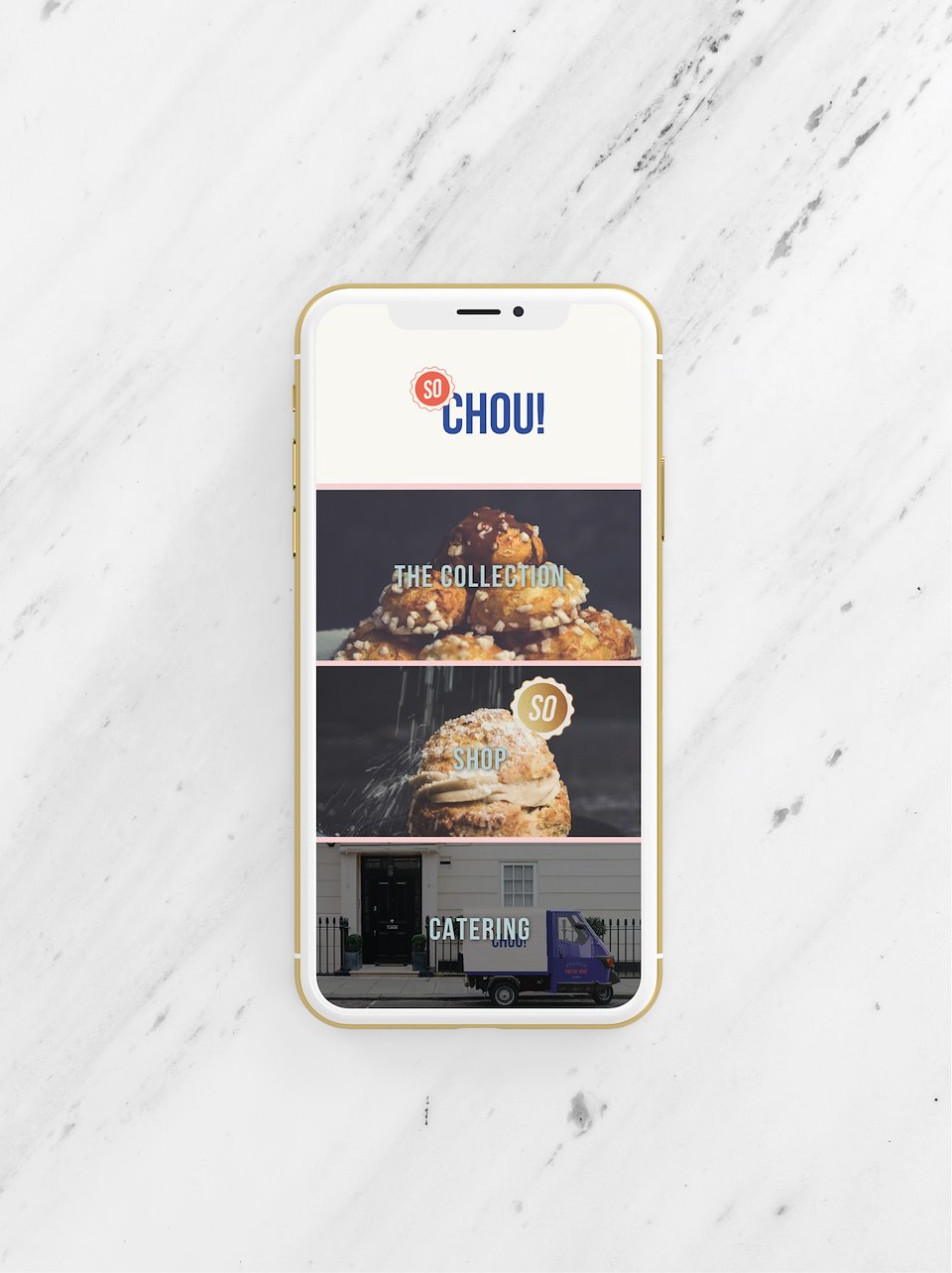 Création de l’identité d’une boutique de choux à Londres.